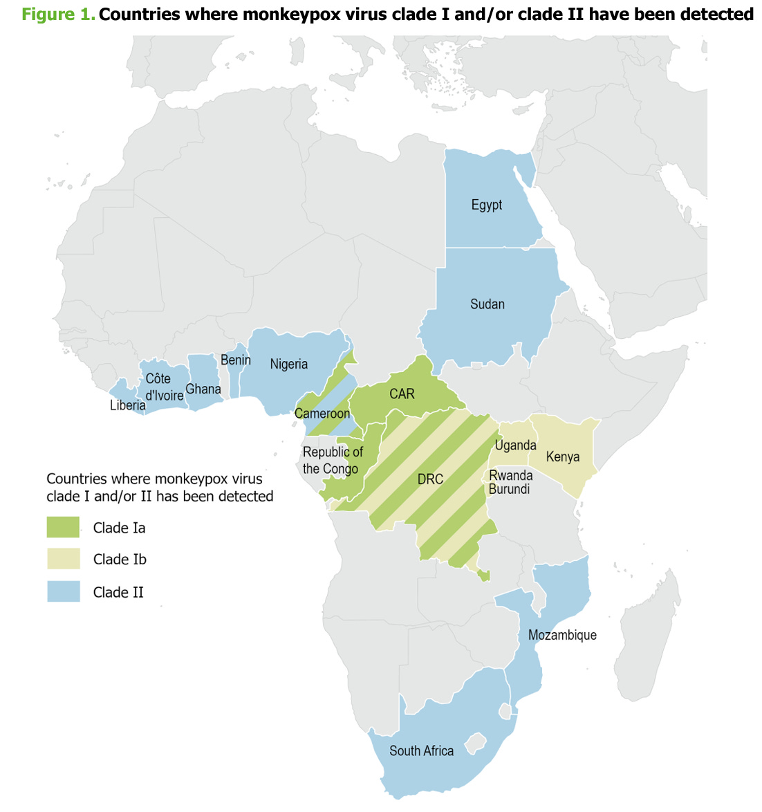 So called clades can be used to classify different viral lineages or strains based on genetic sequences. There are two main clades of the mpox virus. Clade 1, which presumably causes more severe disease, and clade 2, which was responsible for the 2022 global outbreak. A new offshoot, clade 1b, emerged in the DRC in 2023 and is spreading among people through close contact rather than the typical zoonotic spread (from animals to humans). Studies are ongoing to better understand this new clade.