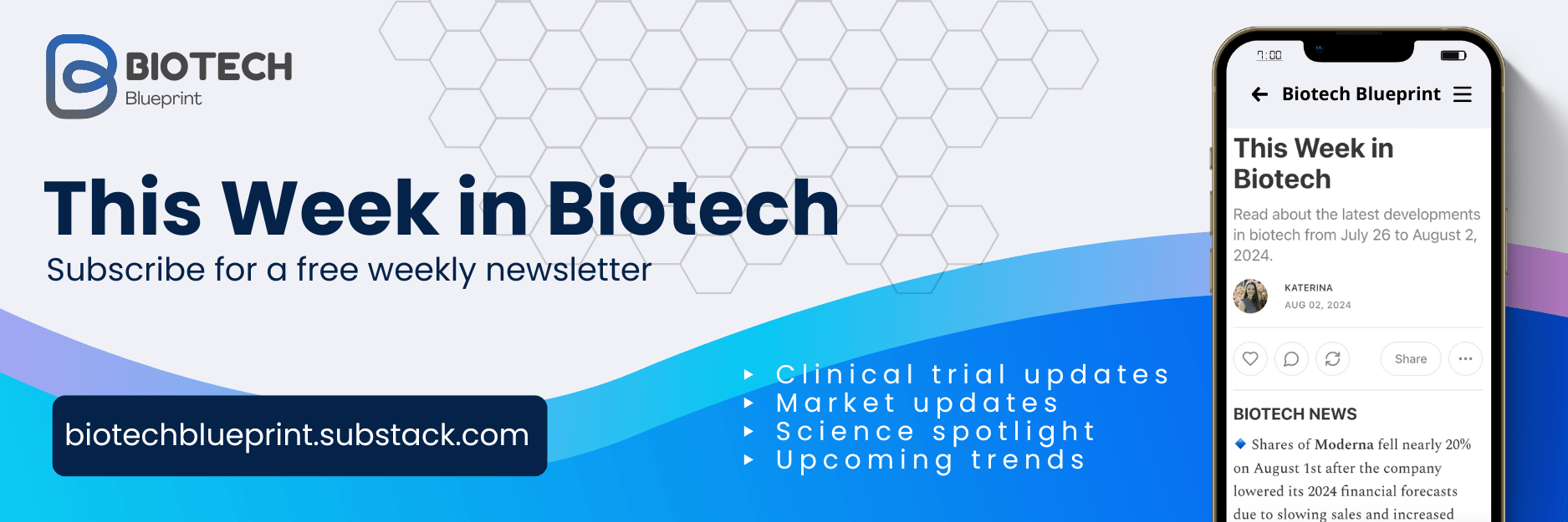 Welcome to This Week in Biotech by Biotech Blueprint, your weekly dose of the latest biotech breakthroughs, clinical trial updates, pharma company news, and forecasts of what’s on the horizon.
